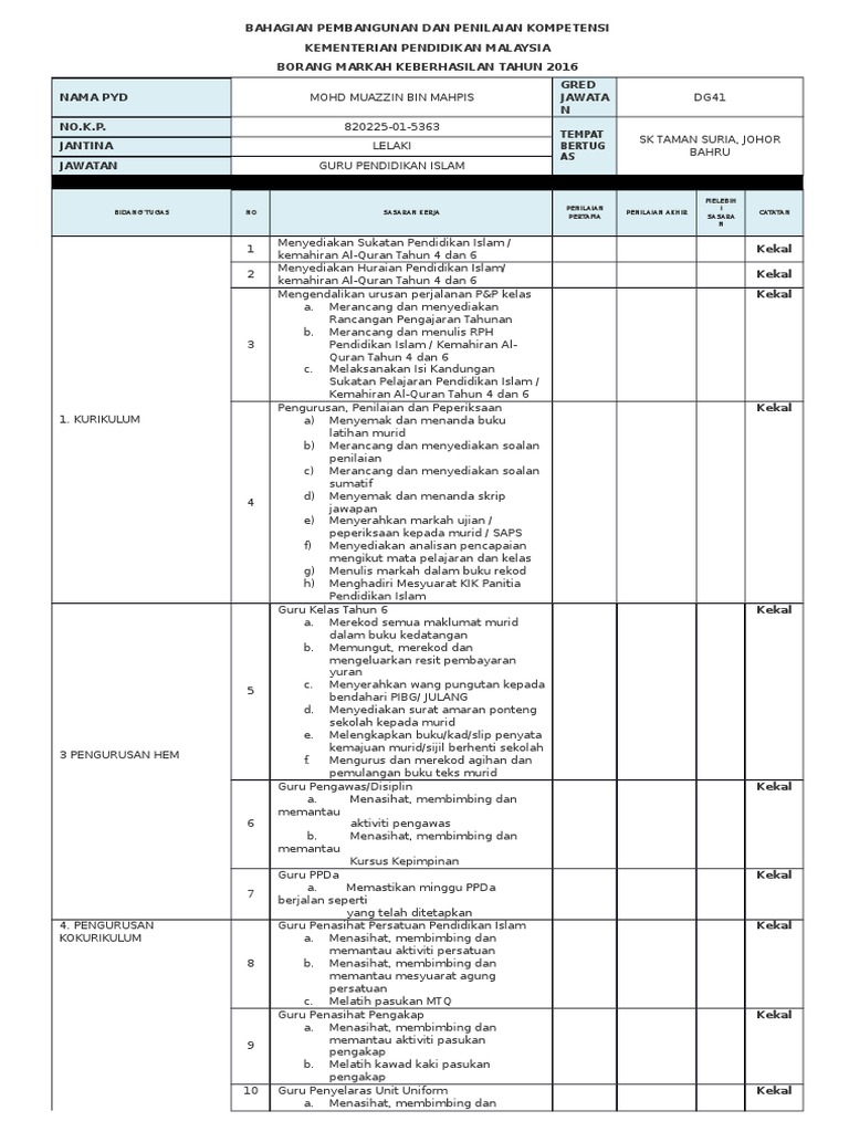 Xls Borang Keberhasilan Guru 2016 Hatta Mohd Hatta Asali Academia Edu